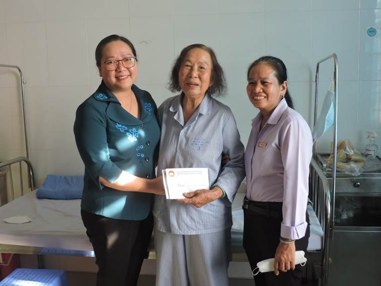 Thay mặt Ban Thường trực Ủy ban Mặt trận Tổ quốc Việt Nam tỉnh, bà Nguyễn Thị Hồng Nhung, Chủ tịch Ủy ban Mặt trận Tổ quốc Việt Nam tỉnh đã ân cần động viên, thăm hỏi, chúc sức khỏe và tặng quà các cô nguyên là lãnh đạo Mặt trận Tổ quốc Việt Nam tỉnh qua các thời kỳ nhân kỷ niệm 92 năm Ngày thành lập Mặt trận Dân tộc Thống nhất Việt Nam - Ngày truyền thống Mặt trận Tổ quốc Việt Nam (18/11/1930 - 18/11/2022). Chúc các cô sống vui, sống khoẻ, luôn quan tâm và theo dõi hoạt động của Mặt trận Tổ quốc Việt Nam tỉnh nhà. Cũng nhân dịp này bà Nguyễn Thị Hồng Nhung trao số tiền hỗ trợ cho cán bộ nhân sĩ trí thức tiêu biểu do Ủy ban Trung ương Mặt trận Tổ quốc Việt Nam hỗ trợ cho các cô nguyên là lãnh đạo Uỷ ban Mặt trận Tổ quốc Việt Nam tỉnh qua các thời kỳ với số tiền 17.880.000 đồng/người./.