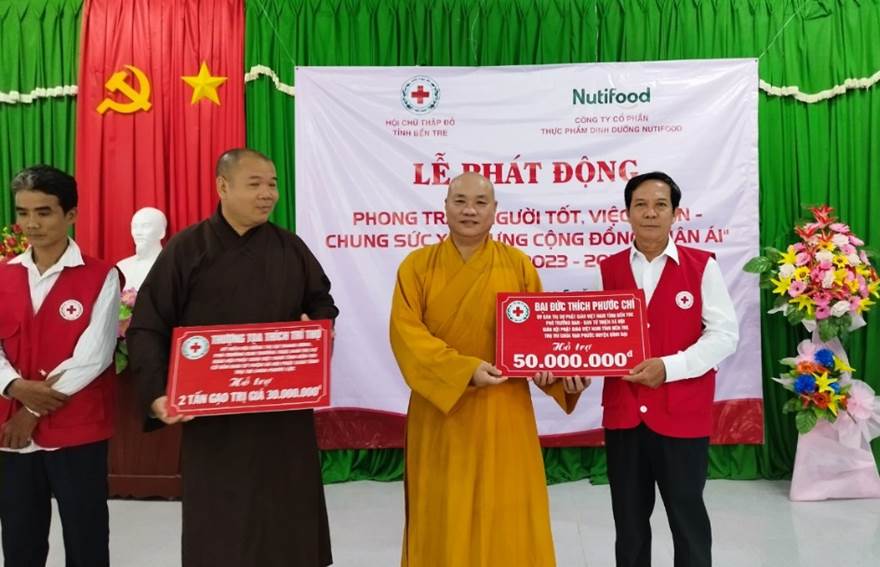 Tại buổi lễ, ông Võ Văn Hoanh, Chủ tịch Hội Chữ thập đỏ tỉnh Bến Tre, Trưởng Ban chỉ đạo phong trào “Người tốt, việc thiện - Chung sức xây dựng cộng đồng nhân ái” phát biểu phát động phong trào trên toàn tỉnh Bến Tre.