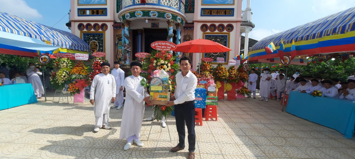 Ông Phạm Ngọc Thành, Phó Trưởng ban Ban Tôn giáo tặng hoa và quà chúc mừng