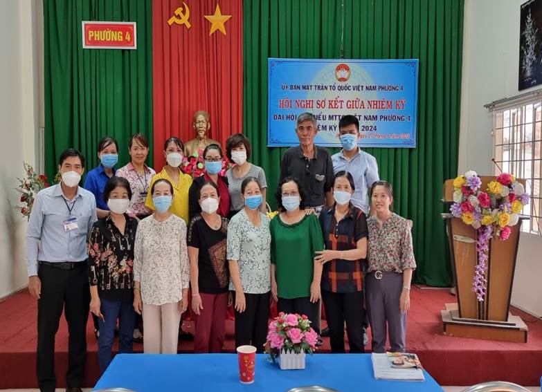 Ngày 27/4/2022, Ủy ban MTTQ Việt Nam phường 4 đã tổ chức hội nghị sơ kết công tác giữa nhiệm kỳ thực hiện Nghị quyết Đại hội đại biểu MTTQ Việt Nam Phường 4, nhiệm kỳ 2019-2024 và triển khai nhiệm vụ trọng tâm nữa nhiệm kỳ còn lại. Nhằm đánh giá quá trình tổ chức thực hiện Nghị quyết Đại hội đại biểu MTTQ Việt Nam Phường 4 trong những năm qua; qua đó đánh giá những kết quả đã đạt được, chỉ ra những hạn chế, tồn tại và nguyên nhân, rút ra những bài học kinh nghiệm để thực hiện thắng lợi các mục tiêu, nhiệm vụ mà Nghị quyết Đại hội đại biểu MTTQ Việt Nam phường nhiệm kỳ 2019-2024 đã đề ra.