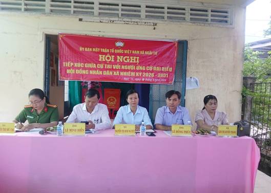 Căn cứ Kế hoạch số: 09/KH-MTTQ-BTT, ngày 25/02/2026 của Ban Thường trực Ủy ban MTTQ Việt Nam xã, về việc tổ chức hội nghị tiếp xúc cử tri để người ứng cử đại biểu Hội đồng nhân dân xã nhiệm kỳ 2026-2031 vận động bầu cử. Kết quả, từ ngày 06/3/2026 đến ngày 13/3/2026, Ban Thường trực Ủy ban MTTQ Việt Nam xã Ngãi Tứ đã tổ chức cho những người ứng cử đại biểu Hội đồng nhân dân xã nhiệm kỳ 2026-2031 tiếp xúc cử tri được 65 cuộc với tổng số 3.210 lượt cử tri tham dự trên địa bàn 33 ấp, khu.