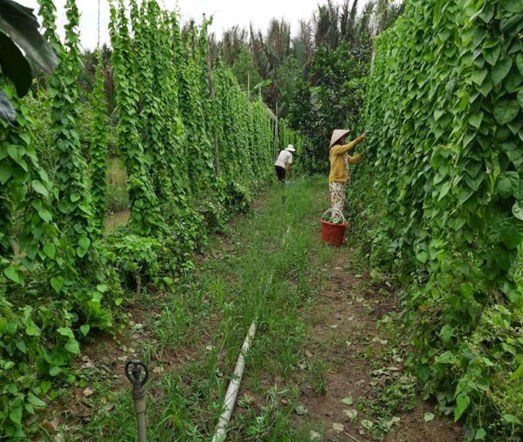 Với diện tích hơn 3.000 m2 đất trồng bưởi không hiệu quả do ảnh hưởng hạn mặn năm 2020, sau khi học hỏi kinh nghiệm, ông Tân mạnh dạn mua hạt sâm về ươm và trồng thử nghiệm trên 1.000 m2 đất. Sau hơn 01 năm, thấy được hiệu quả kinh tế mang lại, ông dùng hạt có sẵn trong vườn tiếp tục ươm hạt và trồng hết diện tích đất còn lại. Từ 5.000 dây lá ban đầu đến nay vườn lá sâm của ông đã có hơn 20.000 dây, thu hoạch hàng tuần từ 25-30 kg lá, sau khi trừ chi phí thu nhập bình quân từ bán lá sâm hàng tháng trên 10 triệu đồng/tháng.