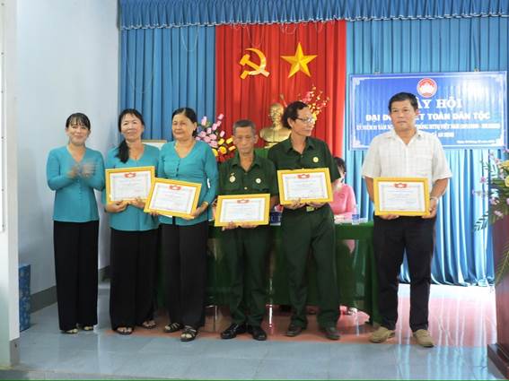 Box: Từ thực tế trong công tác Mặt trận 5 năm qua cho thấy, bên cạnh việc quán triệt sâu sắc các quan điểm, chủ trương, đường lối của Đảng và tư tưởng Hồ Chí Minh về vai trò, vị trí của MTTQ cần không ngừng nâng cao tính chủ động, sáng tạo trong hoạt động của Mặt trận. Xây dựng tình đoàn kết trong Ban Thường trực và Ủy ban Mặt trận Tổ quốc Việt Nam xã, phân công nhiệm vụ cụ thể, có sự đôn đốc, kiểm tra, sơ, tổng kết kịp thời, quan tâm chia sẻ, động viên, giúp đỡ nhau trong thực hiện công tác, trong đời sống thường ngày. Thường xuyên chăm lo củng cố, kiện toàn tổ chức tron đổi mới nội dung hình thức tuyên truyền nâng cao chất lượng hoạt động. Quan tâm đội ngũ làm công tác Mặt trận ở các ấp, đề xuất chế độ bồi dưỡng về vật chất, tinh thần để động viên những đối tượng này an tâm công tác và dành tâm huyết với nhiệm vụ” - Chủ tịch Ủy ban MTTQ Việt Nam xã An Định Lê Thị Hà.