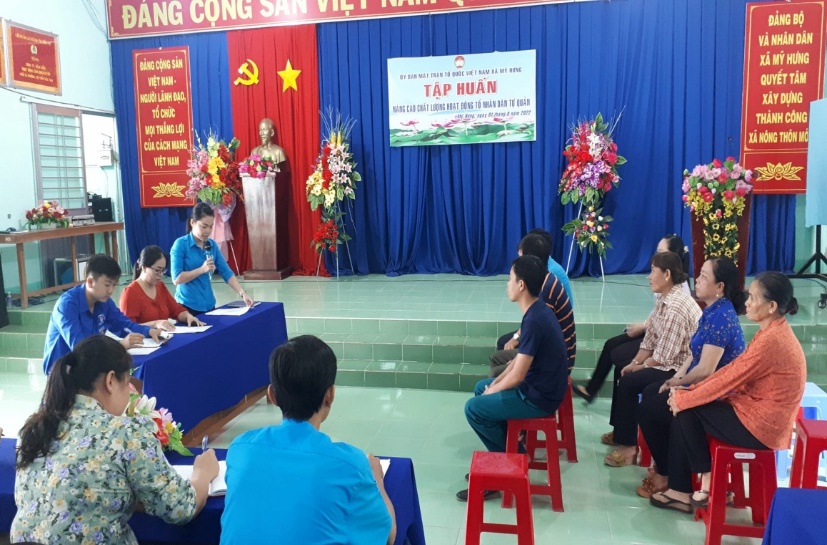Sáng ngày 01/8/2022, tại hội trường Trung tâm Văn hóa thể thao và học tập cộng đồng, MTTQ Việt Nam xã tổ chức buổi tập huấn nâng cao chất lượng hoạt động tổ nhân dân tự quản (NDTQ) năm 2022. Đến tham dự có bà Trần Thị Lụa, Chủ tịch UBND xã; ông Trần Hồ Bắc, Chủ tịch Ủy ban MTTQ Việt Nam xã và đại diện 75 tổ NDTQ về tham dự. Trong những năm qua, các tổ NDTQ trên địa bàn xã đã thể hiện vai trò nòng cốt trong hoạt động tự quản tại cộng đồng dân cư, tổ chức sinh hoạt tổ hàng tháng để tuyên truyền vận động nhân dân thực hiện các đường lối, chủ trương của Đảng, chính sách, pháp luật của Nhà nước. Đặc biệt, các tổ NDTQ đã thực hiện tốt nhiệm vụ tự quản về trật tự an toàn xã hội, xây dựng gia đình văn hóa, thực hiện tốt quyền và nghĩa vụ của công dân nơi cư trú và quy ước cộng đồng, quy chế dân chủ ở cơ sở.