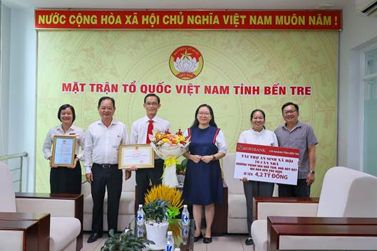 Với tình cảm, trách nhiệm, chung tay thực hiện chương trình xóa nhà tạm, nhà dột nát cho người dân Bến Tre, đại diện lãnh đạo Ngân hàng Nông nghiệp và Phát triển nông thôn Việt Nam – Chi nhánh Bến Tre đã trao ủng hộ kinh phí xây dựng 70 căn nhà chương trình xóa nhà tạm, nhà dột nát trên địa bàn tỉnh Bến Tre, số tiền 4,2 tỷ đồng.
