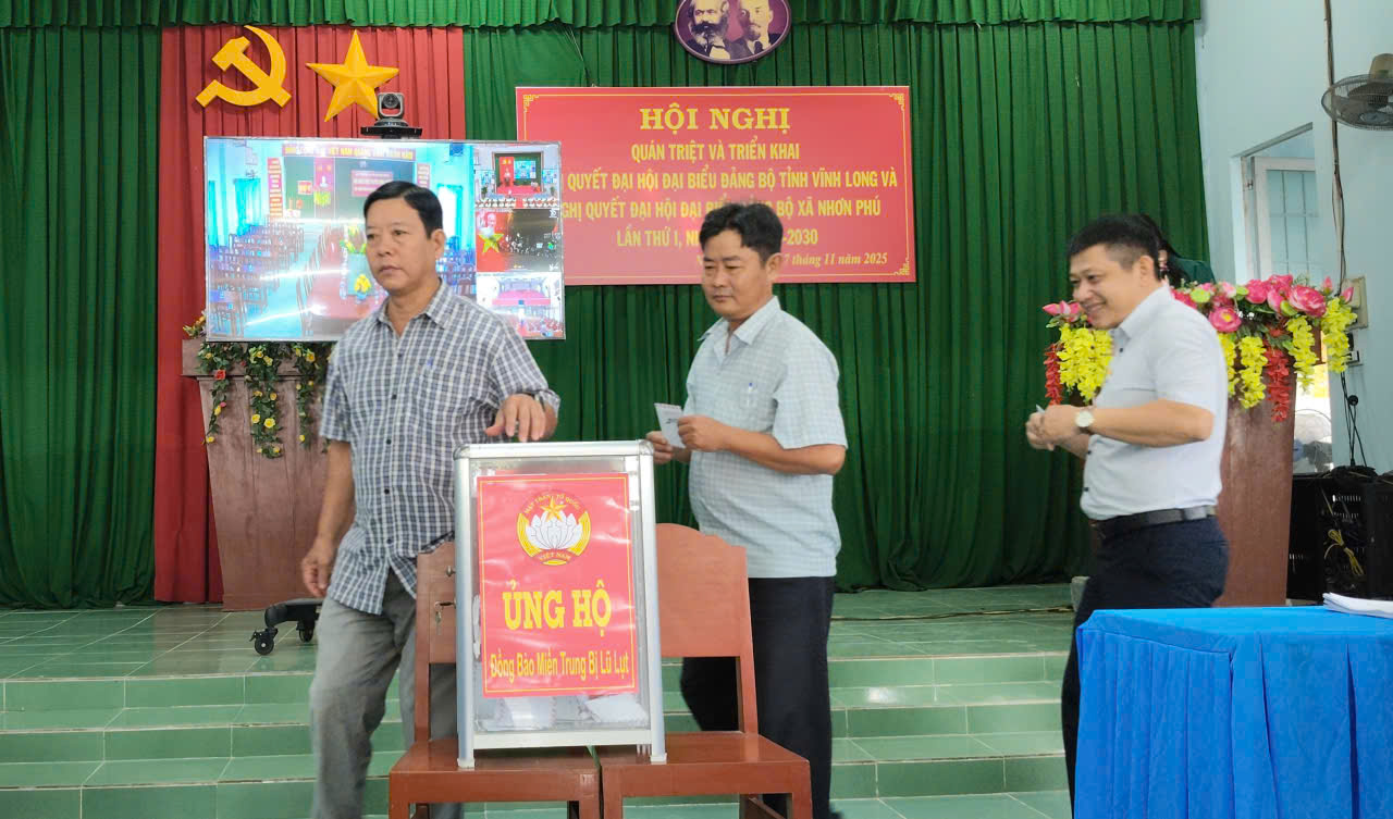 Hưởng ứng lời kêu gọi của Đoàn Chủ tịch Ủy ban Trung ương Mặt trận Tổ quốc Việt Nam và được sự thống nhất của Thường trực Đảng ủy. Sáng ngày 27/11/2025, tại hội trường Đảng ủy xã Nhơn Phú, Ban Thường trực Ủy ban Mặt trận Tổ quốc Việt Nam xã tổ chức Lễ phát động kêu gọi “Ủng hộ đồng bào miền Trung, Tây nguyên khắc phục thiệt hại do mưa lũ gây ra”. Tham dự buổi lễ có bà Nguyễn Huỳnh Thu, Bí thư Đảng ủy - Chủ tịch HĐND xã; ông Nguyễn Hùng Phú, Phó Bí thư Đảng ủy - Chủ tịch UBND xã và gần 90 đại biểu là Ủy viên Ban Thường vụ, Ủy viên Ban Chấp hành Đảng ủy, Hiệu Trưởng các Trường THPT, THCS, Tiểu học, Mầm Non, Bí thư - Trưởng Ban nhân dân ấp và tất cả cán bộ, công chức Khối Đảng và MTTQ Việt Nam xã tham dự.