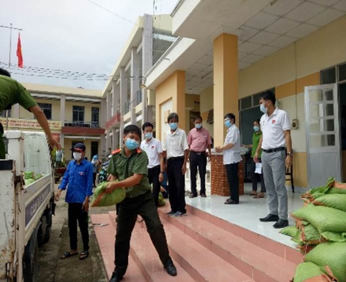 Từ các nguồn kinh phí vận động, tiếp nhận được, Mặt trận huyện đã chi hỗ trợ các xã, thị trấn, khu cách ly tập trung trên địa bàn, các y bác sỹ, lực lượng công an, quân sự, đang thực hiện nhiệm vụ tại chốt kiểm soát, khu cách ly và người dân tại các địa phương trong huyện, tạo động lực để các lực lượng tuyến đầu hoàn thành tốt nhiệm vụ phòng, chống dịch, kịp thời hỗ trợ, động viên, giúp người dân vượt qua khó khăn trước mắt”, đồng thời ra quyết định thành lập tổ tiếp nhận hàng hóa thực hiện tiếp nhận, phân phối đến từng hộ dân trong khu vực cách ly, khu phong tỏa, giúp người dân vượt qua khó khăn, yên tâm thực hiện tốt các quy định phòng chống dịch, thể hiện tinh thần mỗi người dân là một chiến sĩ chung tay đẩy lùi dịch bệnh. Ngoài ra Mặt trận các cấp đã phát huy vai trò của các tổ tự quản, tổ Covid-19 cộng đồng, Ban công tác Mặt trận, tổ dân phố, các chi hội đoàn thể, các vị chức sắc, người có uy tín trong cộng đồng … trong việc vận động Nhân dân tích cực tham gia phòng, chống dịch tại từng khu dân cư; thường xuyên thông tin tình hình, diễn biến và các biện pháp phòng, chống dịch bệnh Covid-19 trên phương tiện thông tin đại chúng để mọi người dân nâng cao ý thức, trách nhiệm trong phòng, chống dịch; giám sát, kịp thời phát hiện sớm các trường hợp công dân về trên địa bàn; các trường hợp vi phạm quy định về phòng, chống dịch; hướng dẫn thực hiện khai báo y tế và cách ly y tế đầy đủ... Phối hợp cùng lực lượng chức năng truy vết các trường hợp tiếp xúc với người bệnh.