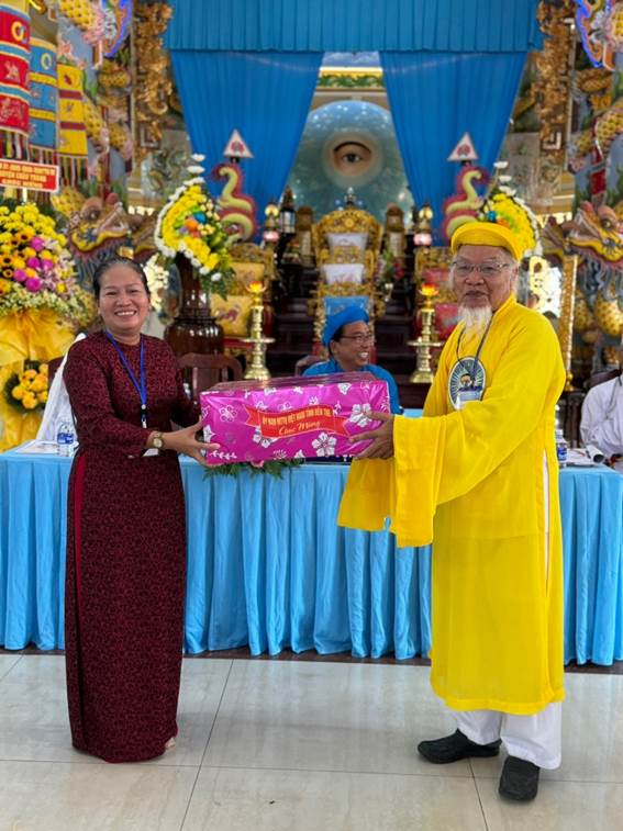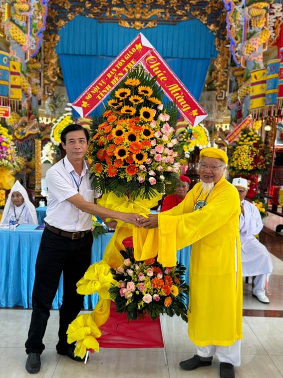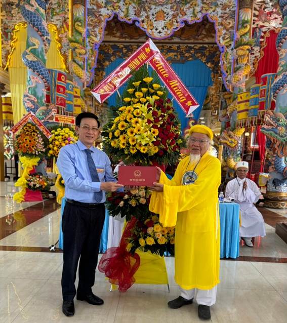Phó Trưởng ban Ban Tôn giáo Chính phủ Nguyễn Ánh Chức tặng hòa và quà chức mừng