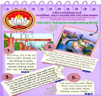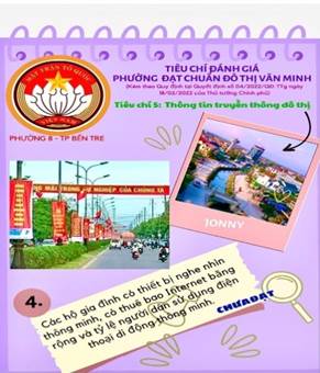 Nhằm chào mừng Đại hội đại biểu Ủy ban Mặt trận Tổ quốc Việt Nam Phường 8, nhiệm kỳ 2024 - 2029. Ủy ban Mặt trận Tổ quốc Việt Nam Phường 8 thực hiện chuyên mục tuyên truyền trên trang facebook Mặt trận phường "Mỗi tuần tìm hiểu 1 tiêu chí xây dựng phường đạt chuẩn đô thị văn minh".