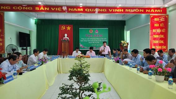 Thực hiện Nghị định số 78/2002/NĐ-CP ngày 04/10/2002 của Chính phủ về tín dụng với người nghèo và các đối tượng chính sách khác, Ngân hàng Chính sách xã hội (NHCSXH) thực hiện phương thức ủy thác cho vay hộ nghèo và các đối tượng chính sách khác thông qua tổ chức chính trị - xã hội. Cùng với việc hình thành mạng lưới Tổ Tiết kiệm và vay vốn (tổ TK&VV) đến các ấp, khu phố trong toàn huyện, phương thức ủy thác đã huy động sức mạnh tổng hợp của cả hệ thống chính trị, gắn kết từ 04 nhà (Ngân hàng, Chính quyền, Tổ chức chính trị - xã hội và Tổ TK&VV) cùng chung tay giúp người nghèo, đối tượng chính sách biết sử dụng vốn vay, tạo sinh kế, tạo việc làm, nâng cao thu nhập, ổn định cuộc sống, góp phần tích cực thực hiện Chương trình mục tiêu quốc gia giảm nghèo bền vững, xây dựng nông thôn mới.