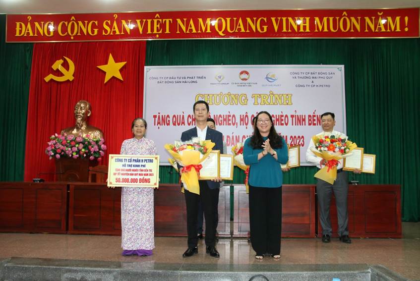 Ngày 10 - 01 - 2023, Ban Thường trực Ủy ban Mặt trận Tổ quốc Việt Nam tỉnh phối hợp với các công ty, doanh nghiệp tổ chức chương trình tặng quà cho gia đình chính sách khó khăn, người nghèo dịp Tết Nguyên đán Quý Mão năm 2023. Dự chương trình có bà Nguyễn Thị Hồng Nhung, Chủ tịch Ủy ban Mặt trận Tổ quốc Việt Nam tỉnh; lãnh đạo Sở Lao động - Thương binh và Xã hội tỉnh; Ban Dân vận Tỉnh ủy. Về phía đơn vị tài trợ có ông Đinh Phú Minh - Tổng Giám đốc Tập đoàn Ngân Tín, ông Trịnh Xuân Đức - Phó tổng Giám đốc Tập đoàn Ngân Tín, ông Nguyễn Hải Hà - Phó tổng Giám đốc Tập đoàn Ngân Tín, ông Phạm Công Hạnh - Giám đốc Chi nhánh Hồ Chí Minh (Đại diện Công ty cổ phần đầu tư và phát triển bất động sản Hải Long), bà Trương Thị Trang - Giám đốc Công ty cổ phần bất động sản và thương mại Phú Quý.