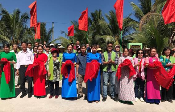 Chính quyền địa phương cùng nhà tài trợ thực hiện nghi thức cắt băng khánh thành cầu Vạn Duyên 41