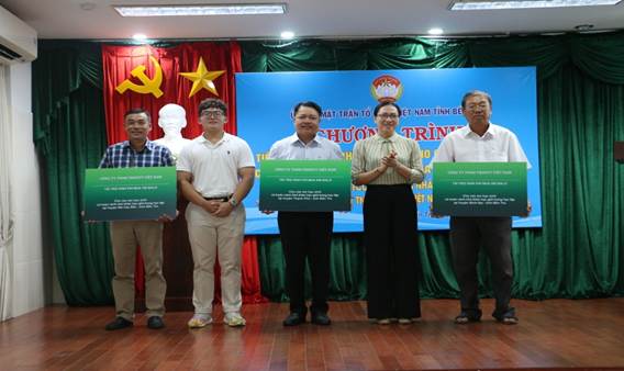 Công ty TNHH Trinity Việt Nam trao bảng tượng trưng hỗ trợ kinh phí cho các huyện