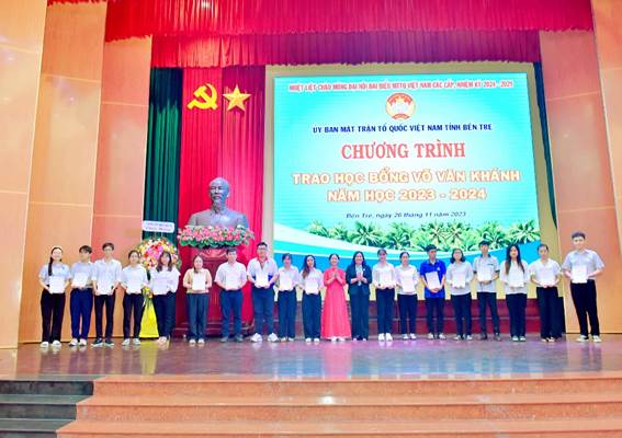 Sáng ngày 26/1/2023, Ban Thường trực Ủy ban MTTQ Việt Nam tỉnh Bến Tre, Ban điều hành Quỹ học bổng Võ Văn Khánh phối hợp tổ chức chương trình trao học bổng Võ Văn Khánh cho học sinh, sinh viên hiếu học có hoàn cảnh khó khăn tỉnh Bến Tre năm học 2023-2024.