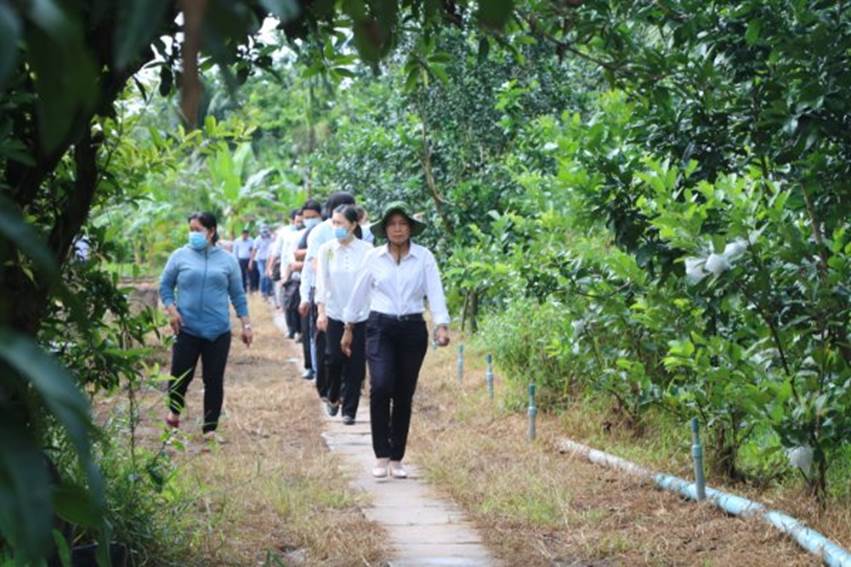 Phó Chủ tịch Ủy ban MTTQ Việt Nam tỉnh Đặng Thị Phượng cùng đoàn khảo sát của tỉnh đi thực địa công tác giải phóng mặt bằng Dự án cầu RM2