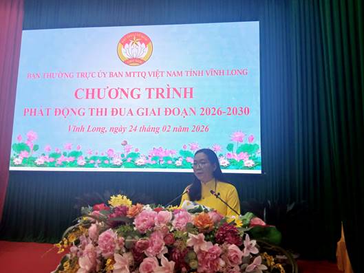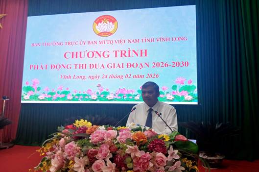 Sáng 24/02/2026, Ban Thường trực Ủy ban MTTQ Việt Nam tỉnh Vĩnh Long tổ chức họp mặt đầu xuân Bính Ngọ và phát động phong trào thi đua giai đoạn 2026-2030 và năm 2026.