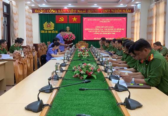 Thực hiện Quyết định số 374/QĐ-VKSBT-P8 ngày 28/8/2024 của Viện trưởng Viện kiểm sát nhân dân (KSND) tỉnh Bến Tre, từ ngày 17/9 đến ngày 20/9/2024, Viện KSND tỉnh Bến Tre đã tiến hành trực tiếp kiểm sát việc thi hành án hình sự (THAHS) tại Cơ quan THAHS Công an tỉnh Bến Tre. Đoàn kiểm sát do ông Bùi Văn Đằng – Phó Viện trưởng Viện KSND tỉnh làm Trưởng đoàn cùng với sự tham gia phối hợp, giám sát của đại diện Ban Thường trực Ủy ban MTTQ Việt Nam tỉnh và Ban Pháp chế HĐND tỉnh.
