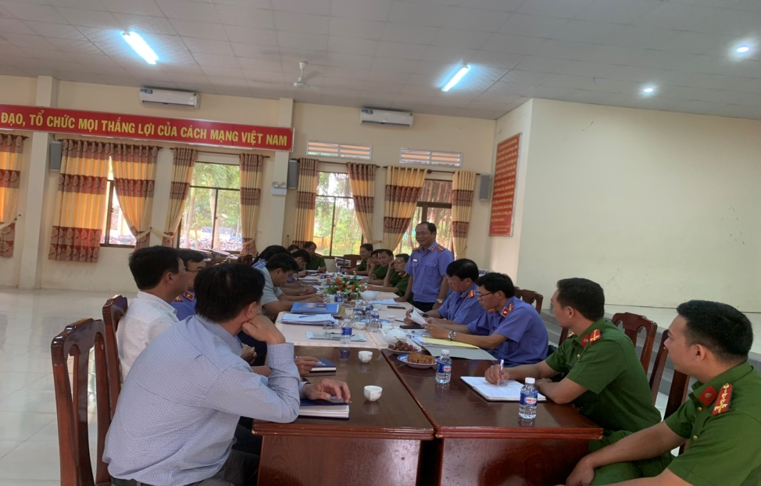Sau khi nghe Thượng tá Trần Văn Chiến, Phó Thủ trưởng Cơ quan THAHS Công an tỉnh Bến Tre báo cáo tình hình chấp hành pháp luật trong công tác THAHS từ ngày 01/8/2023 đến ngày 12/9/2024. Đoàn đã trực tiếp nghiên cứu các loại sổ sách, hồ sơ, tài liệu liên quan đến công tác thi hành án hình sự tại Cơ quan THAHS Công an tỉnh Bến Tre; kiểm sát công tác quản lý, giáo dục và thực hiện chế độ đối với phạm nhân tại Trại tạm giam Công an tỉnh; trực tiếp làm việc tại 02 Cơ quan THAHS Công an cấp huyện (Giồng Trôm và Chợ Lách); kiểm sát hồ sơ quản lý, giám sát, giáo dục người chấp hành án hình sự tại cộng đồng thuộc Uỷ ban nhân dân (UBND) xã Bình Thành và xã Bình Hòa, huyện Giồng Trôm; xã Tân Thiềng và xã Phú Phụng, huyện Chợ Lách.