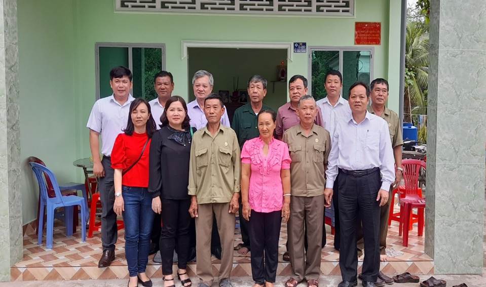 Đơn vị tài trợ chụp hình lưu niệm với 02 gia đình được tặng nhà