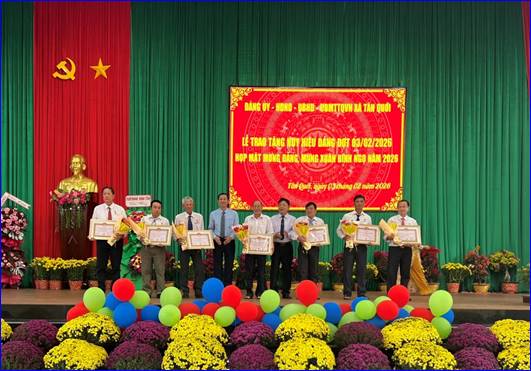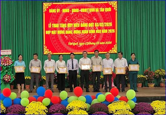 Để ghi nhận những đóng góp của các đồng chí cao niên tuổi Đảng, Ban Thường vụ Đảng ủy xã Tân Quới trao tặng Huy hiệu 30 năm và 40 năm tuổi Đảng cho đảng viên của các Chi bộ trực thuộc Đảng bộ xã. Theo đó, tại buổi lễ, có 6 đảng viên vinh dự được nhận Huy hiệu 30 năm tuổi Đảng, 01 đảng viên nhận Huy hiệu 40 năm tuổi Đảng. Đây là phần thưởng cao quý của Đảng, biểu dương những đóng góp, cống hiến bền bỉ, trọn đời vì sự nghiệp cách mạng của các đồng chí. Việc trao tặng Huy hiệu Đảng là sự ghi nhận sâu sắc đối với công lao, tinh thần kiên trung và son sắt của người đảng viên trong suốt chặng đường phấn đấu vì lý tưởng cách mạng.